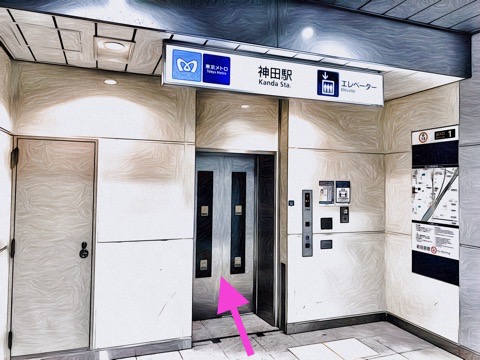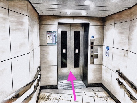 出入口1のエレベーターへ