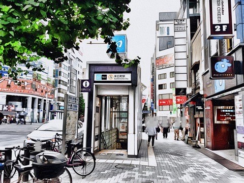 御徒町駅(JR線) / 御徒町台東中学校 / 黒門小学校 / 東都文京病院 / 仲御徒町駅(日比谷線) / ホテルニューグリーン御徒町 / みずほ銀行 / 湯島駅(千代田線)