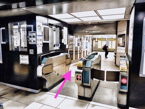 3号車1番扉(先頭から3両目)付近の改札階を出て前方へ