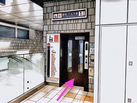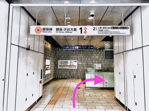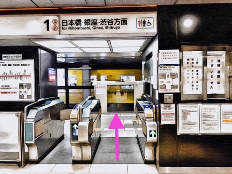 1番線が渋谷方面行きホーム(3号車1番扉/先頭から3両目)