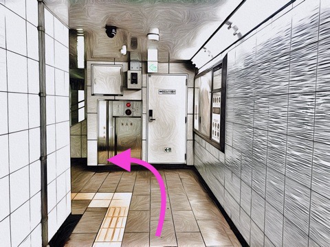 エレベーターを降り左へ