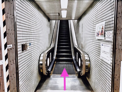 5号車3番扉(先頭から2両目)付近の改札を出て右へ