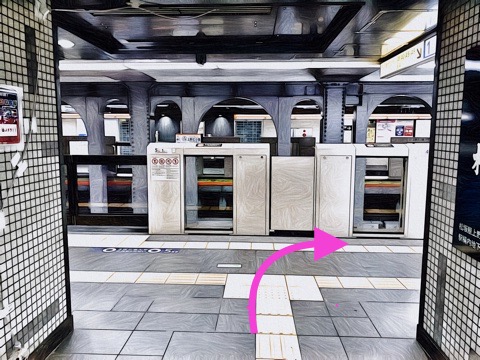 右前方にある改札へ