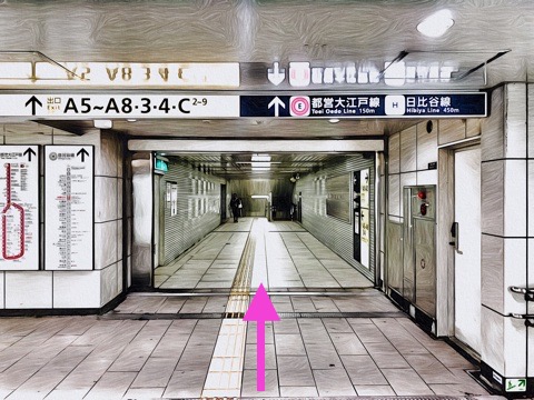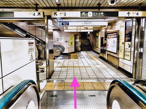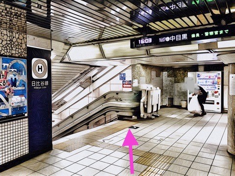 車いす対応エスカレーターで東京メトロ日比谷線改札階へ