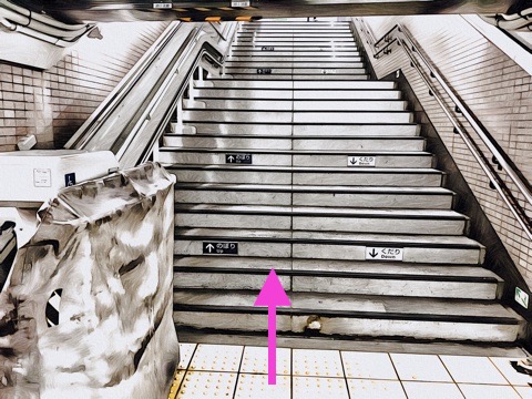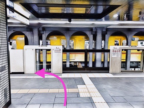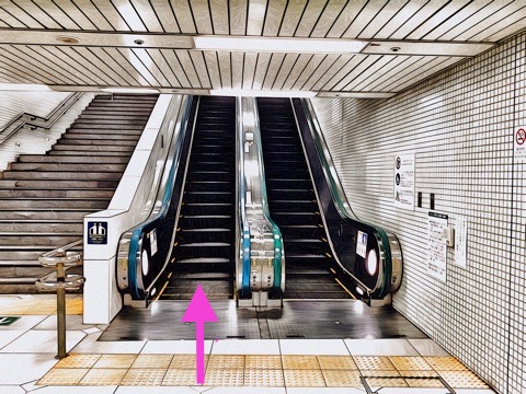 5号車1番扉(先頭から2両目)付近から階段昇降機へ