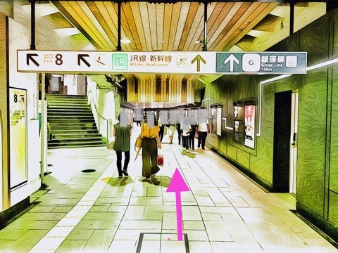 1番線が渋谷方面行きホーム(6号車4番扉/先頭から6両目)