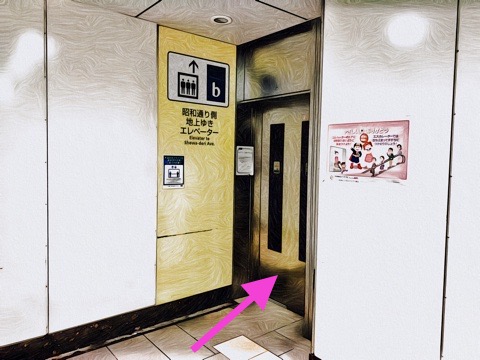 エレベーターbへ