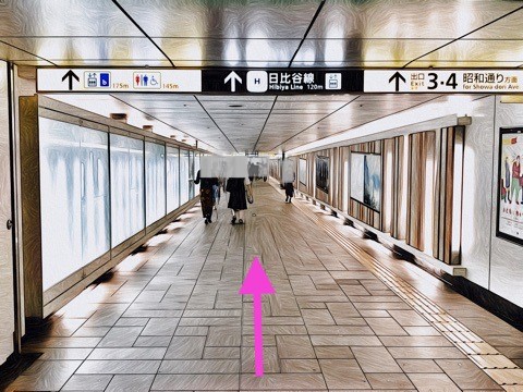 通路に沿って右前方へ