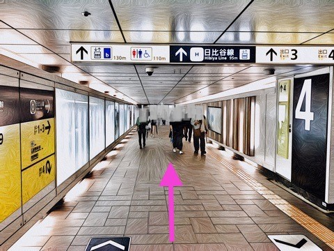 6号車4番扉(先頭から6両目)付近からエレベーターへ