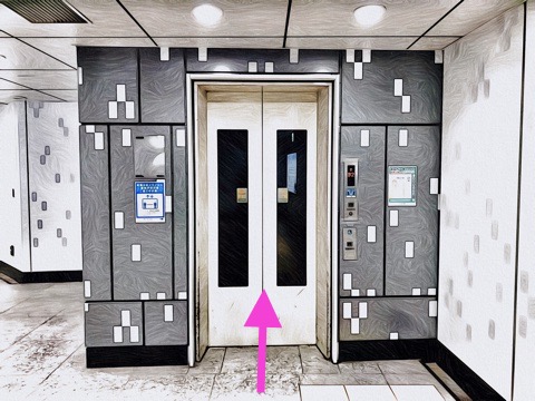 前方のエレベーターへ