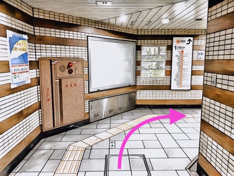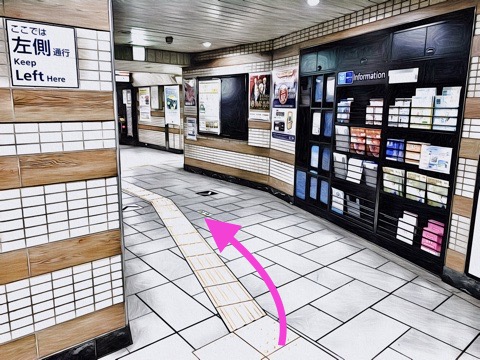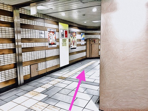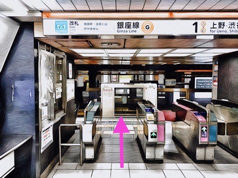 改札を入り前方が渋谷方面行きホーム(4号車2番扉/先頭から4両目)