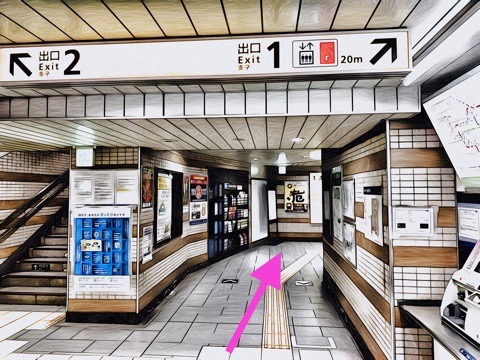 4号車2番扉(先頭から4両目)付近の改札を出る