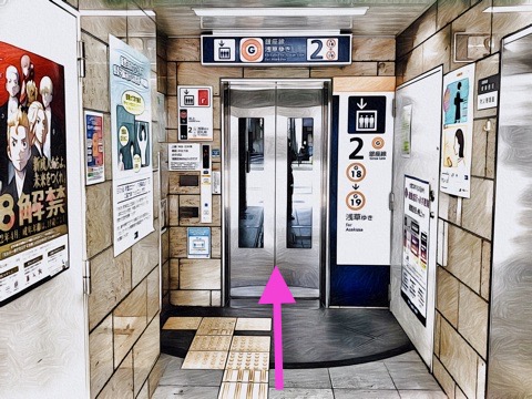 エレベーターr浅草方面から