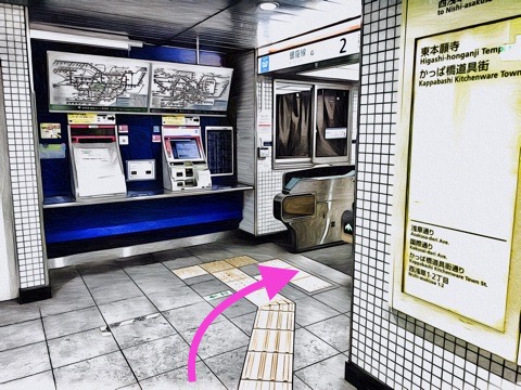 浅草方面行きホーム(3号車1番扉/先頭から4両目)