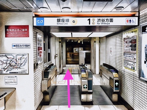渋谷方面行きホーム(1号車1番扉/先頭から1両目)