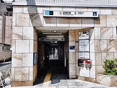 ⇒東京メトロ銀座線 ⇒G18田原町 ⇒乗車 ⇒浅草方面行き車両へ