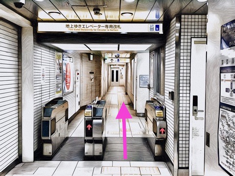 1号車1番扉(先頭から1両目)付近の改札を出て前方のエレベーターへ