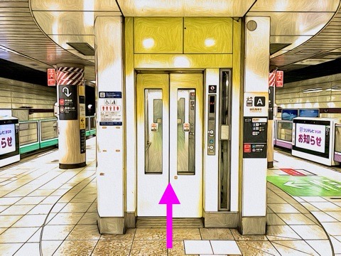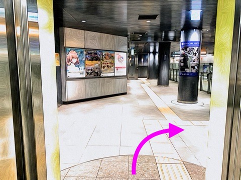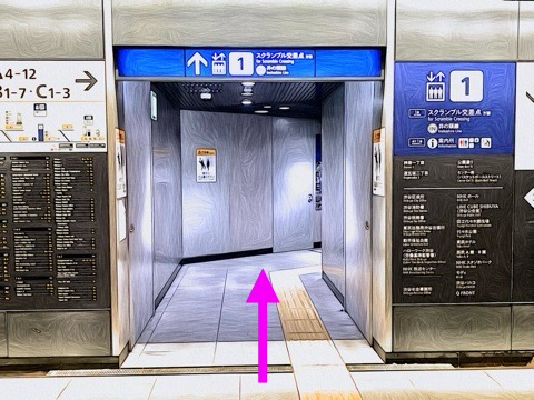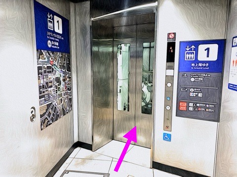 10号車1番扉(先頭から1両目)付近のエレベーターで上の階(B2F)へ