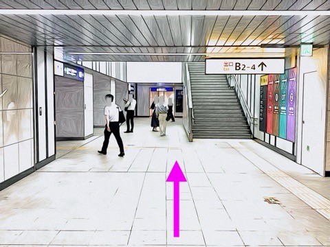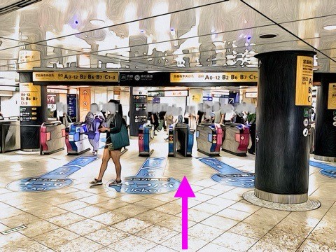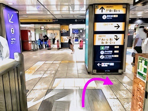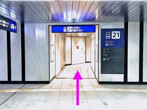 1号車1番扉(先頭から10両目)付近のエスカレーターへ