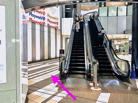 4号車2番扉(先頭から7両目)付近のエスカレーターへ