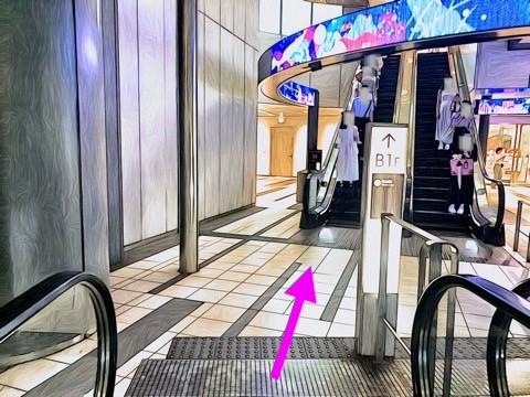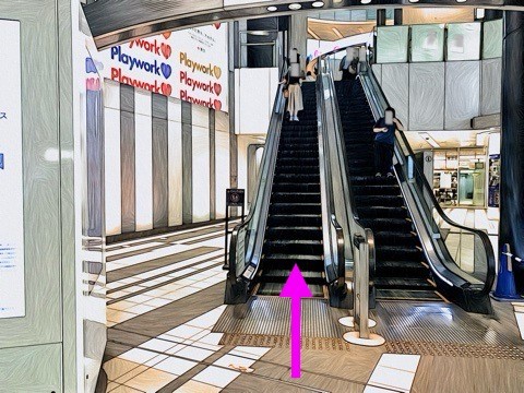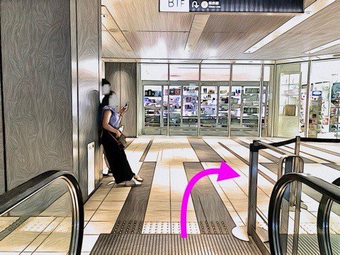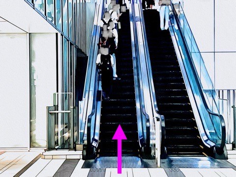 4号車2番扉(先頭から7両目)付近のエスカレーターへ