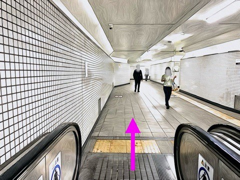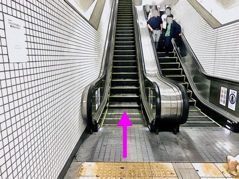 4号車2番扉(先頭から7両目)付近のエスカレーターへ