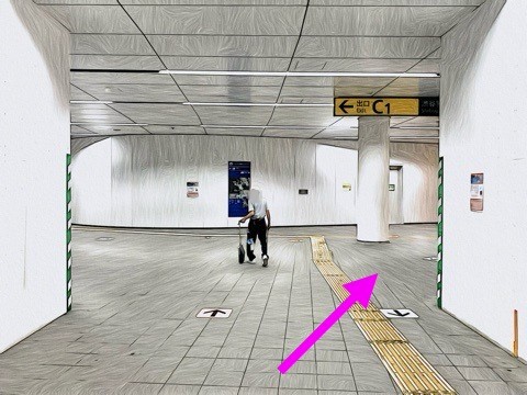 エスカレーターを降り前方の改札へ
