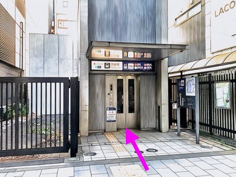 出入口20aのエレベーターへ