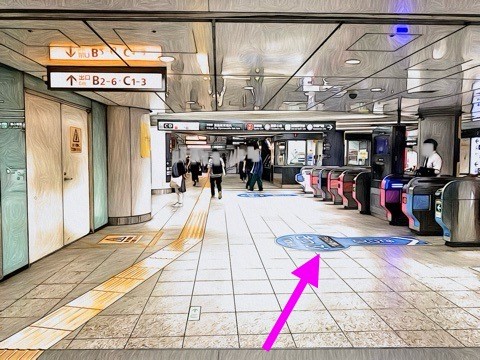 改札を入り右前方へ