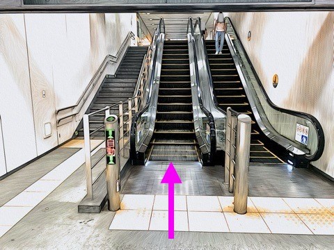 前方のエスカレーターへ