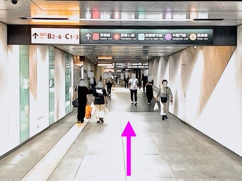 エスカレーターを降り前方へ