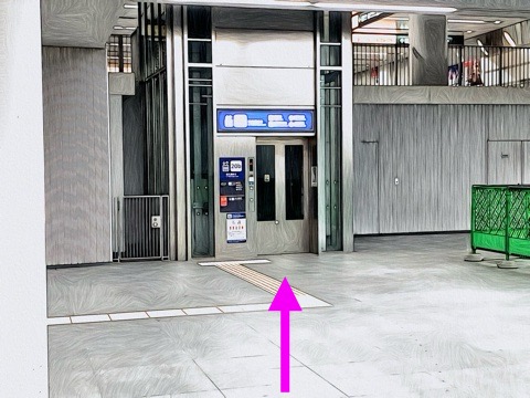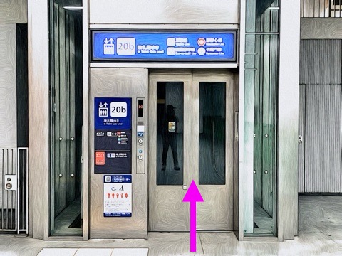 出入口20aのエレベーターへ