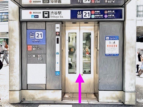 出入口21のエレベーターへ