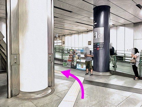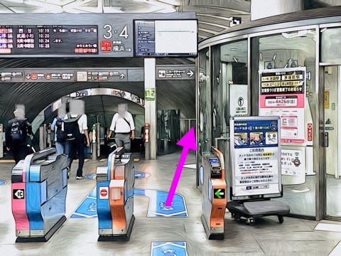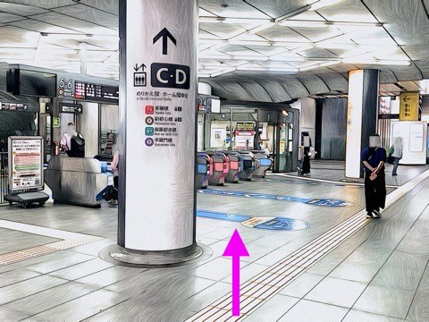 2番線が押上方面行きホーム(1号車4番扉/先頭から1両目)