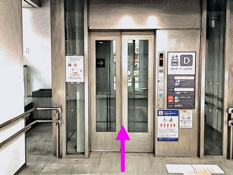 1号車4番扉(先頭から10両目)付近のエレベーターで下の階(B4F)へ