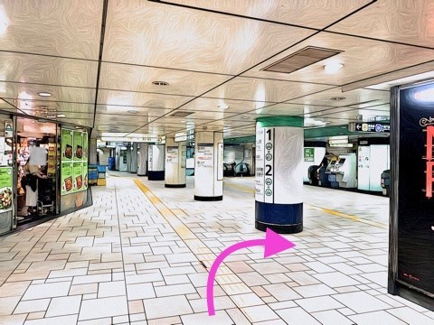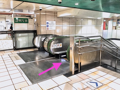 6号車3番扉(先頭から5両目)付近のエレベーターで改札階へ