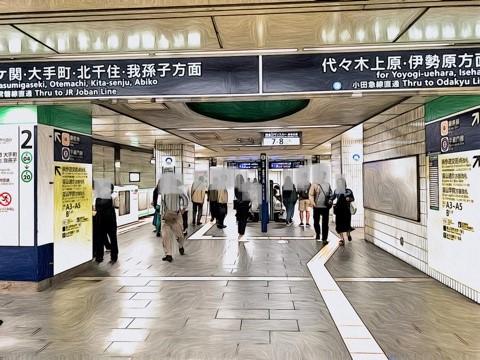 2番線が綾瀬方面行きホーム(7号車4番扉/先頭から4両目)