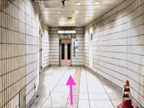前方のエレベーターへ
