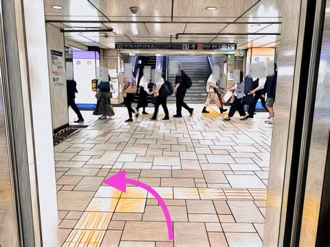 6号車3番扉(先頭から6両目)付近のエレベーターで改札階へ