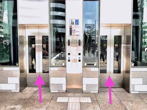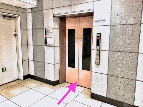 出入口1のエレベーターへ