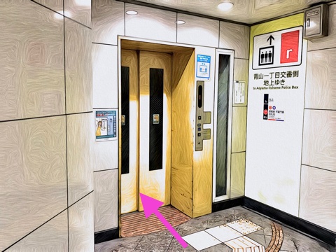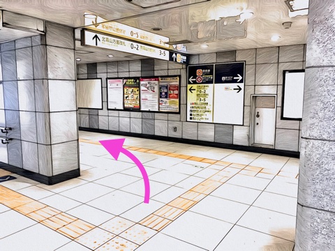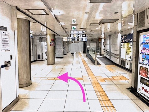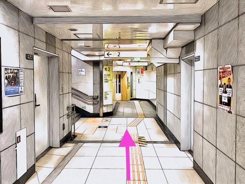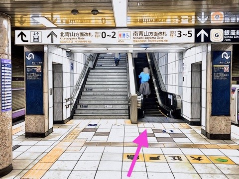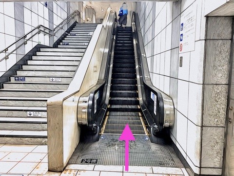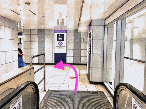 6号車1番扉(先頭から5両目)付近のエスカレーターへ