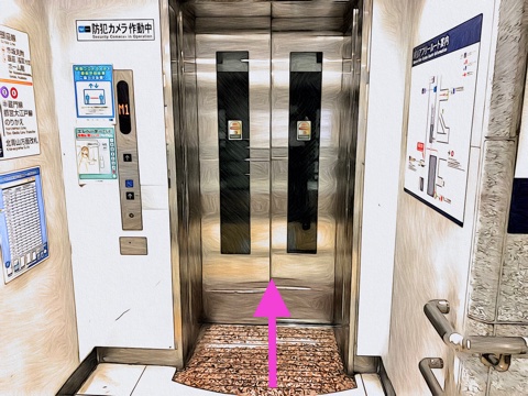 6号車1番扉(先頭から6両目)付近のエスカレーターへ