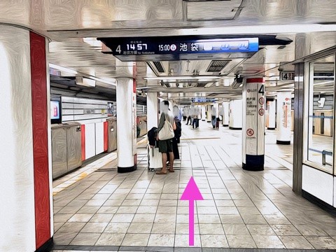 10号車4番扉(先頭から10両目) 付近からエレベーターへ
