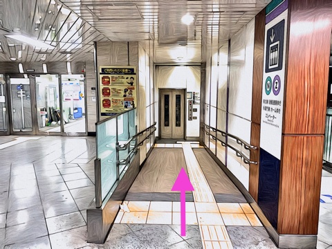出入口5のエレベーターへ