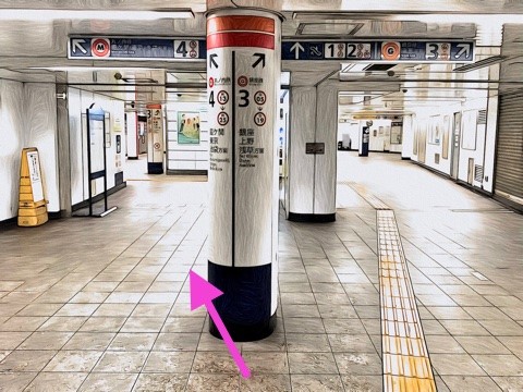 1番線が渋谷方面行きホーム(1号車1番扉/先頭から1両目)