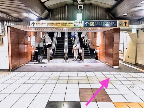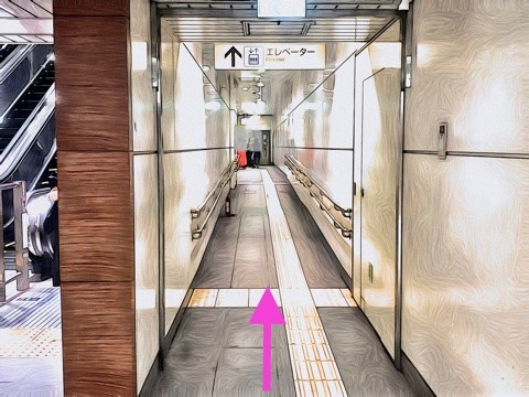 1号車1番扉(先頭から1両目) 付近からエレベーターへ