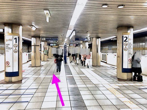 1号車1番扉(先頭から10両目) 付近からエスカレーターへ