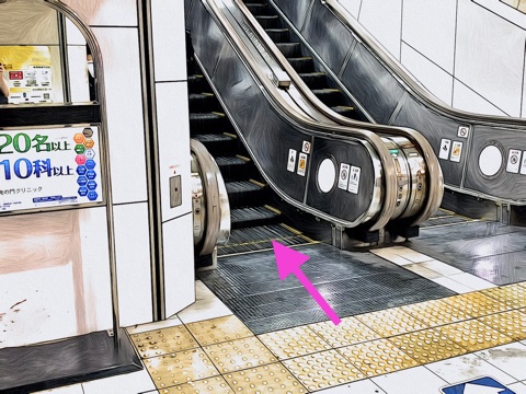 10号車4番扉(先頭から1両目) 付近からエスカレーターへ