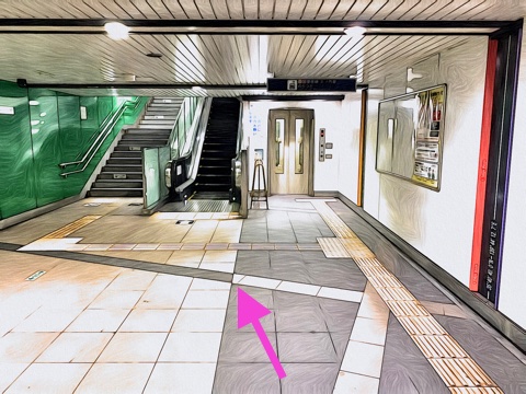 エスカレーターを降り前方の改札へ