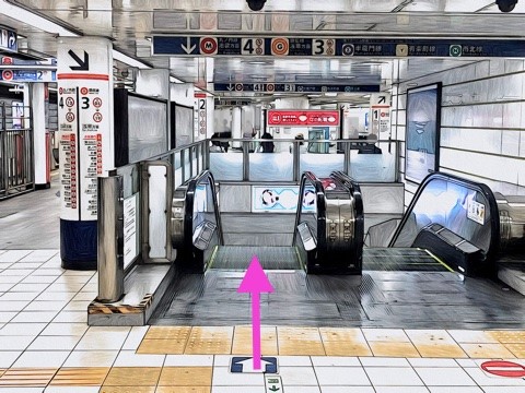 前方のエスカレーターへ
